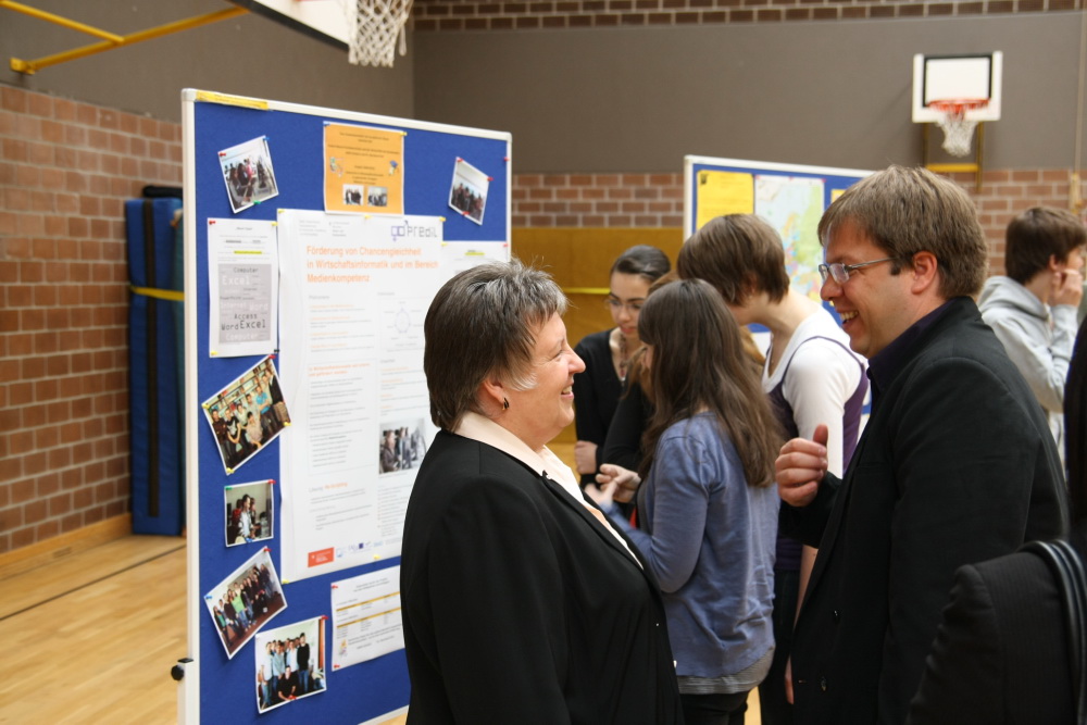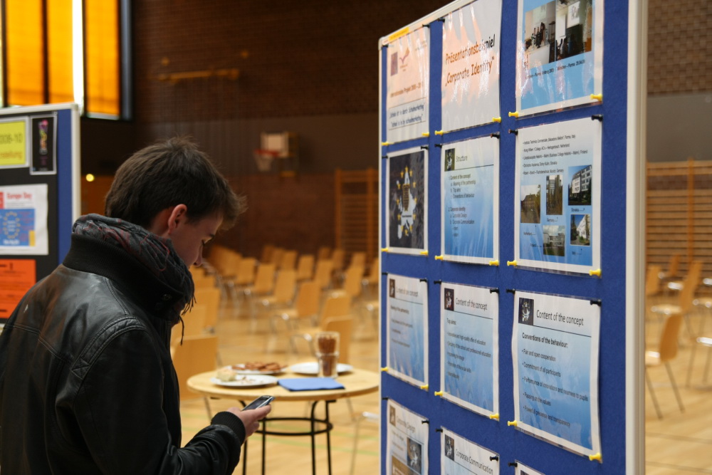 Schülerinnen und Schüler präsentieren mit Stellwänden, Infoständen, Powerpoint-Präsentationen und Erlebnisberichten ihre Erfahrungen, die sie während der Vorbereitung und Durchführung von Unterrichts- und Mobilitätsprojekten gemacht haben. Es werden die positiven Auswirkungen auf Bewerbungschancen und berufliche Qualifikation aufgezeigt. Die Projekte umfassen Schulpartnerschaften mit 12 Städten im gesamten EU-Raum von Skandinavien, den britischen Inseln, den Benelux-Staaten bis Süd- und Osteuropa. |
